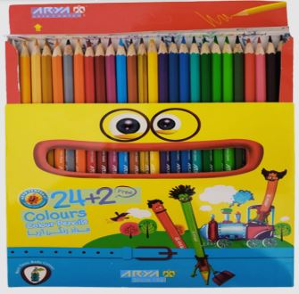 مداد رنگی 24+2 رنگ جعبه مقوایی آریا